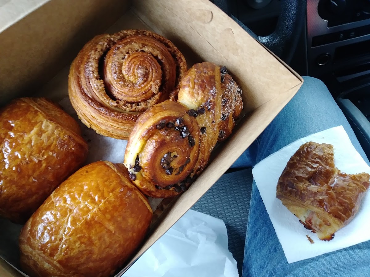 Ordered croissants & roasted garlic ciabatta rolls - picked up close to noon— the croissants were boxed (chocolate & almond) & the RG Ciabatta rolls were just out of the oven in an open top pastry bag! Smelled heavenly all the way home! Uber delicious!! Omg! Thank you & recommend highly!!!